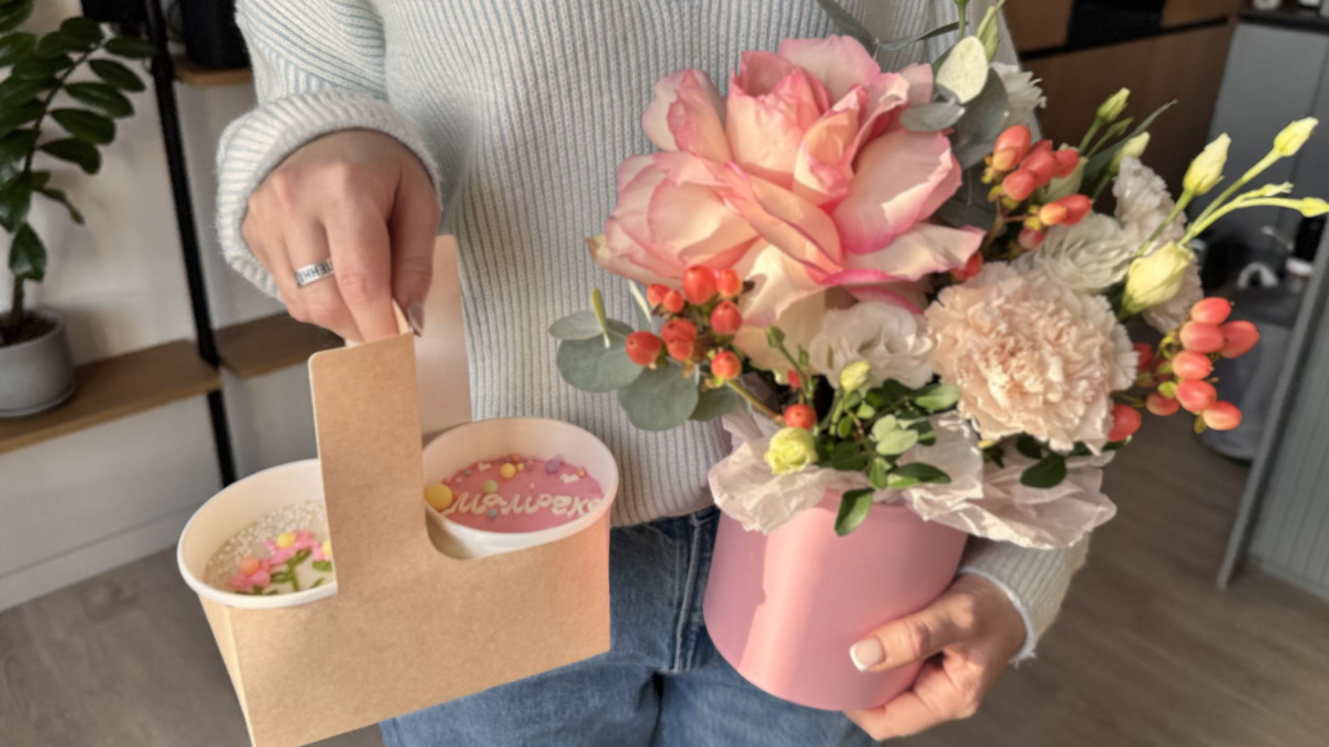 ✔️ Создание изысканной цветочной композиции из живых цветов.
